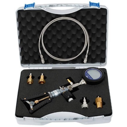 The robust modular calibration system model BCS10 serves for the inspection of the SF₆ gas density and pressure measuring instruments by means of comparative measurements. This calibration system is used to check quickly and easily both density-based and pressure-based mechanical and electronic measuring instruments