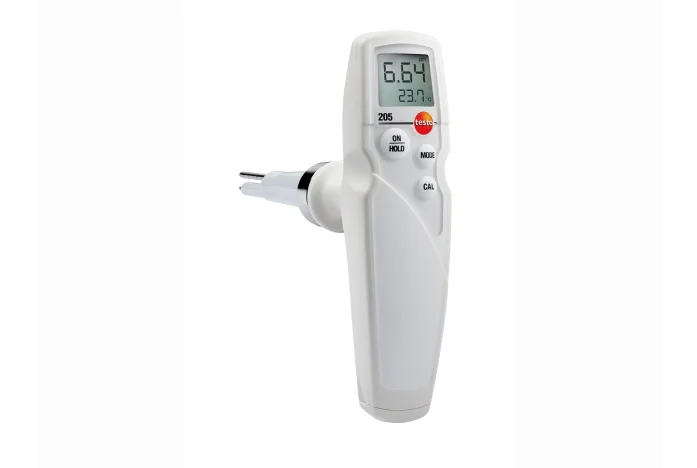 - The testo 205 enables pH measurements to be carried out in semi-solid media. The integrated temperature sensor ensures precise temperature compensation, and therefore accurate pH measurement